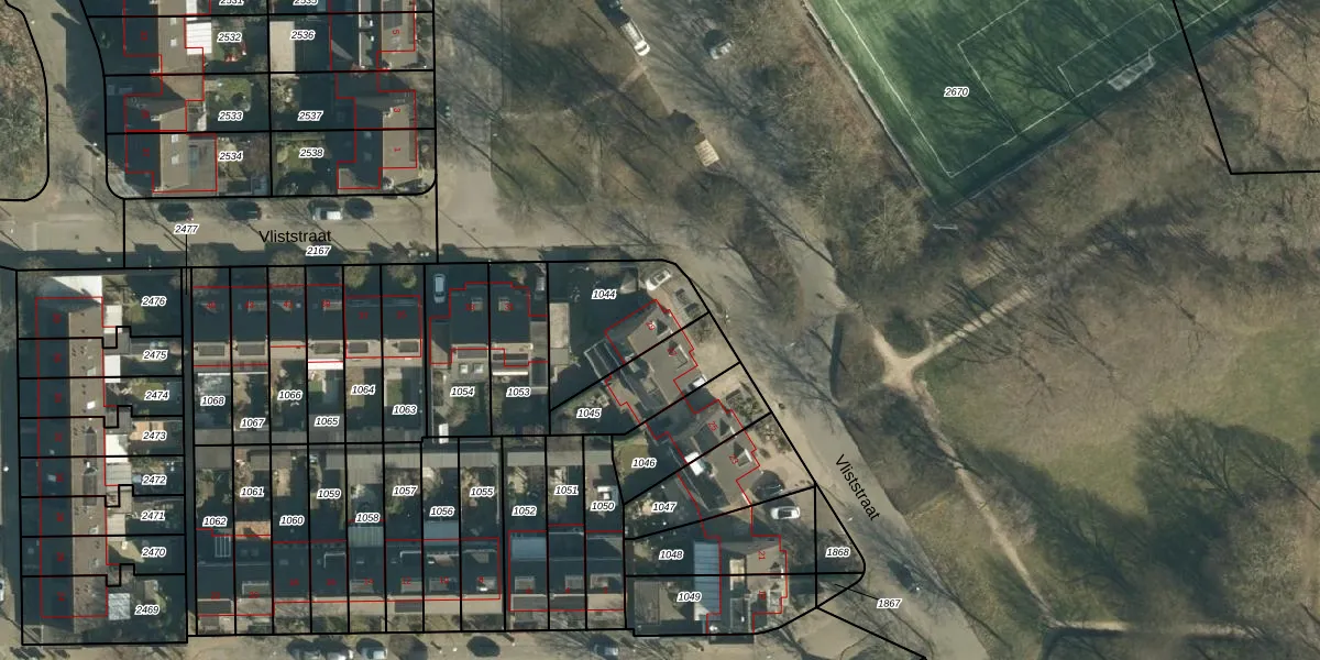 Het perceel waarop Vliststraat 29 staat heeft een oppervlakte van 353 m². Dit is een groot perceel. De perceeloppervlakte wordt geregistreerd door het Kadaster. Gedetailleerde informatie over de maten van dit perceel kunt u vinden in het rapport Kadastrale kaart met maatvoering van Vliststraat 29.