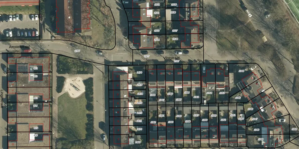 Gebruik de zoekbalk of klik op een perceel voor informatie over de adressen binnen dit perceel.