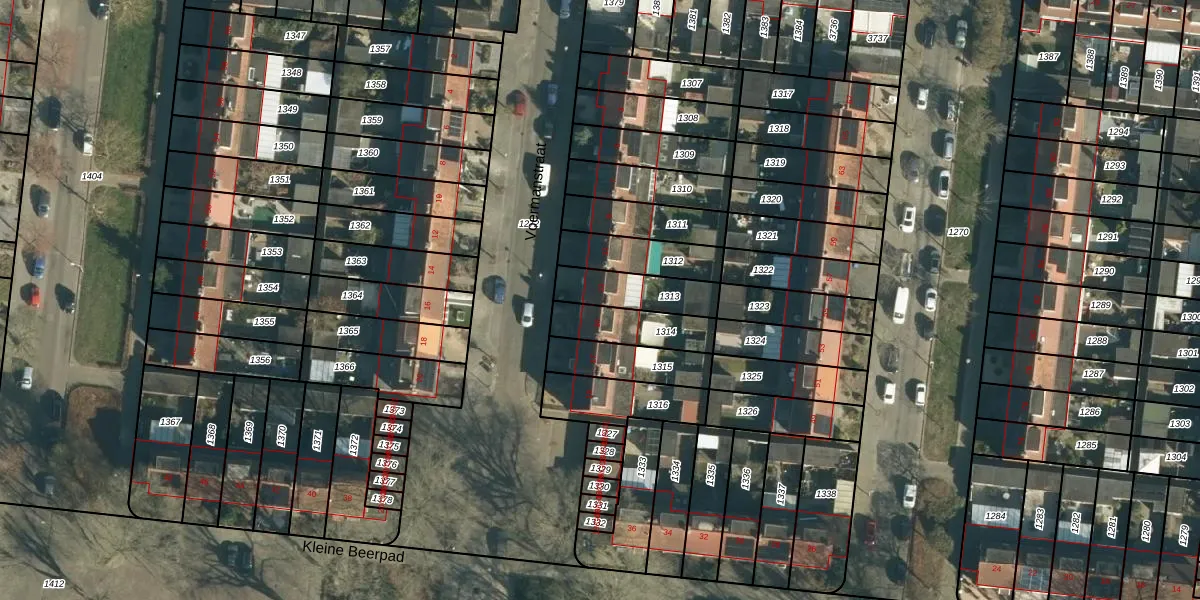 Gebruik de zoekbalk of klik op een perceel voor informatie over de adressen binnen dit perceel.