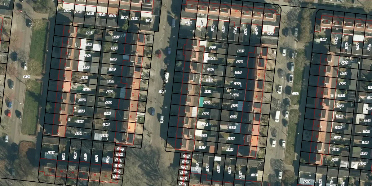 Het perceel waarop Voermanstraat 9 staat heeft een oppervlakte van 164 m². Dit is een middelgroot perceel. De perceeloppervlakte wordt geregistreerd door het Kadaster. Gedetailleerde informatie over de maten van dit perceel kunt u vinden in het rapport Kadastrale kaart met maatvoering van Voermanstraat 9.