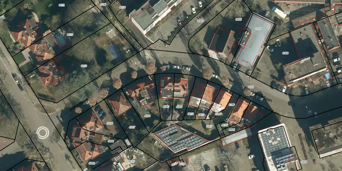 Het perceel waarop Vondellaan 17 staat heeft een oppervlakte van 245 m². Dit is een middelgroot perceel. De perceeloppervlakte wordt geregistreerd door het Kadaster. Gedetailleerde informatie over de maten van dit perceel kunt u vinden in het rapport Kadastrale kaart met maatvoering van Vondellaan 17.