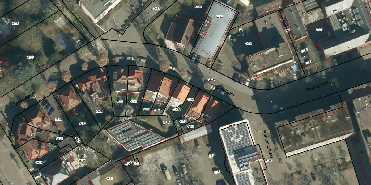 Vondellaan 9 is gelegen op kadastraal perceel STM00A5927. Deze kadastrale aanduiding is uniek en wordt gebruikt door het Kadaster om eigendomsrechten en andere zakelijke rechten vast te leggen. Het perceel maakt onderdeel uit van de kadastrale gemeente Stratum.
