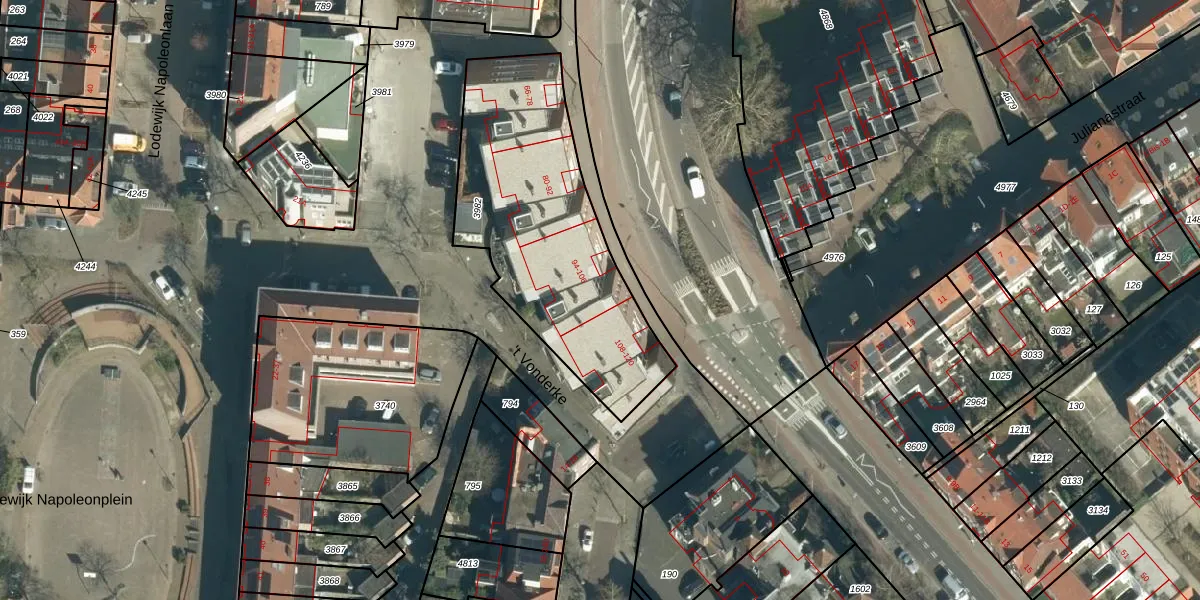Het perceel waarop Vonderweg 100 staat heeft een oppervlakte van 1119 m². Dit is een zeer groot perceel. De perceeloppervlakte wordt geregistreerd door het Kadaster. Gedetailleerde informatie over de maten van dit perceel kunt u vinden in het rapport Kadastrale kaart met maatvoering van Vonderweg 100.