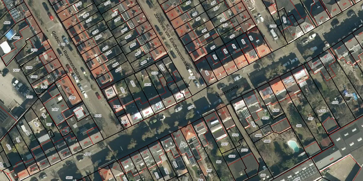 Gebruik de zoekbalk of klik op een perceel voor informatie over de adressen binnen dit perceel.