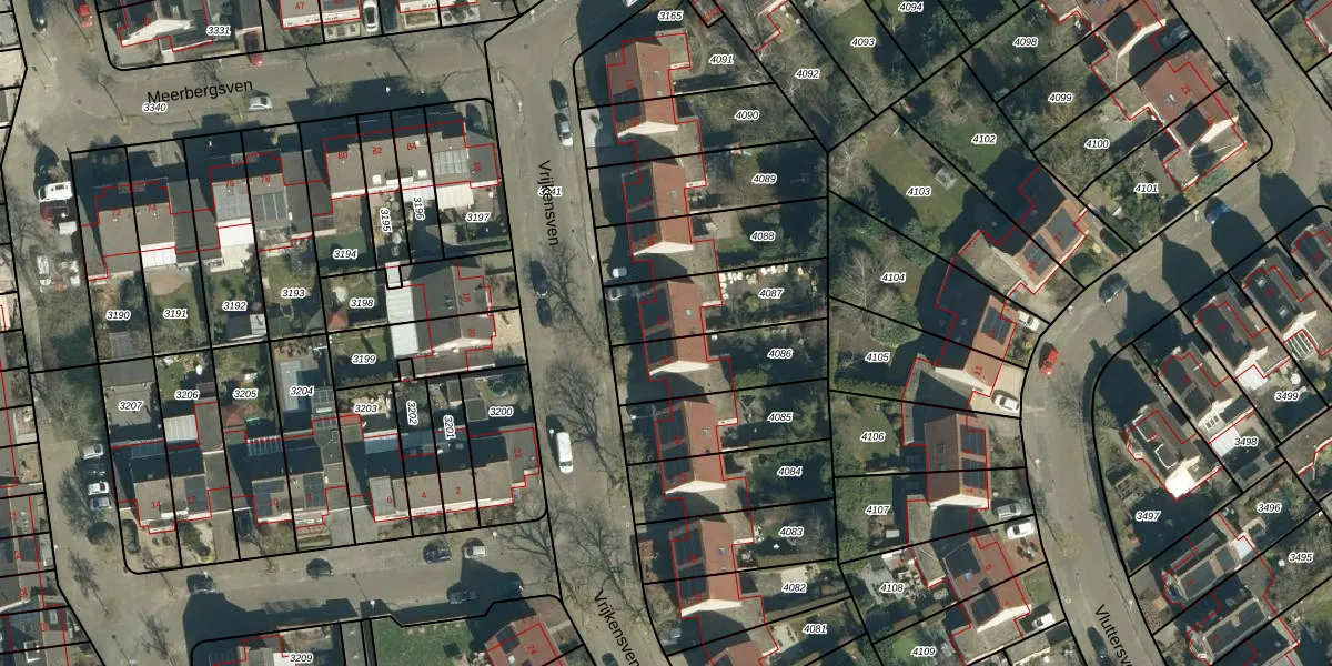Het perceel waarop Vrijkensven 21 staat heeft een oppervlakte van 302 m². Dit is een groot perceel. De perceeloppervlakte wordt geregistreerd door het Kadaster. Gedetailleerde informatie over de maten van dit perceel kunt u vinden in het rapport Kadastrale kaart met maatvoering van Vrijkensven 21.