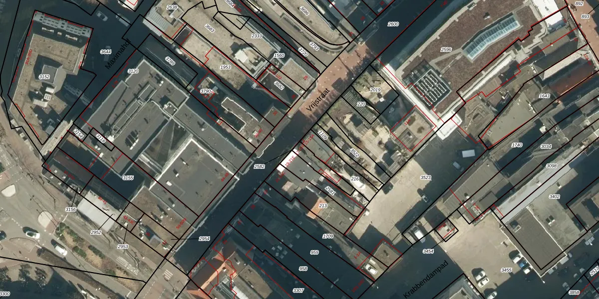 Het perceel waarop Vrijstraat 17 staat heeft een oppervlakte van 97 m². Dit is een klein perceel. De perceeloppervlakte wordt geregistreerd door het Kadaster. Gedetailleerde informatie over de maten van dit perceel kunt u vinden in het rapport Kadastrale kaart met maatvoering van Vrijstraat 17.