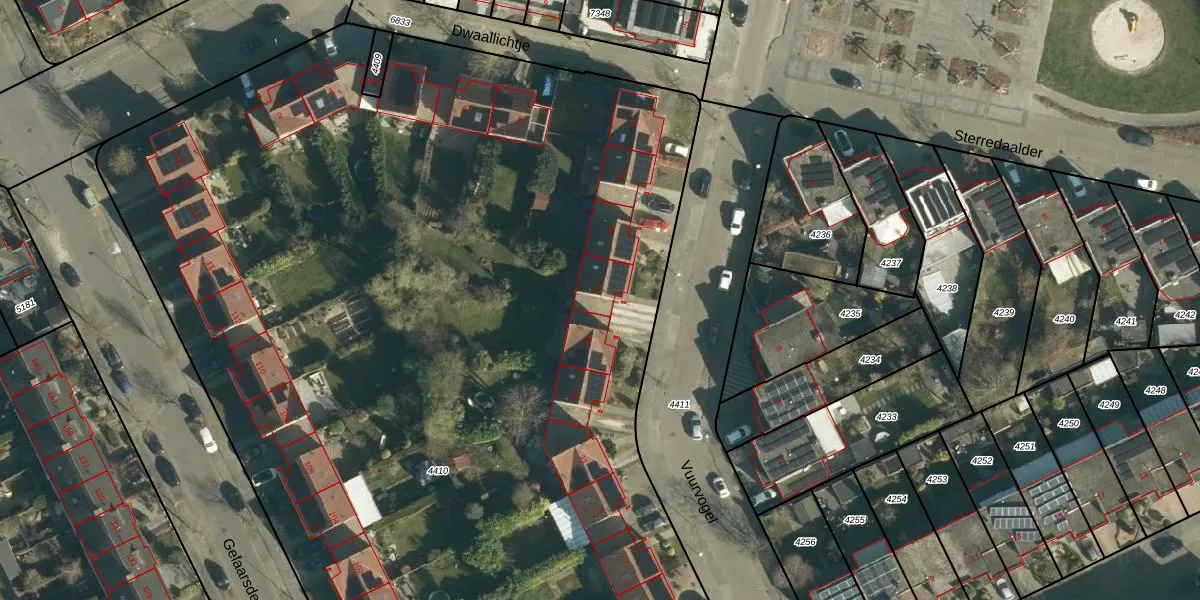 Het perceel waarop Vuurvogel 17 staat heeft een oppervlakte van 9366 m². Dit is een zeer groot perceel. De perceeloppervlakte wordt geregistreerd door het Kadaster. Gedetailleerde informatie over de maten van dit perceel kunt u vinden in het rapport Kadastrale kaart met maatvoering van Vuurvogel 17.
