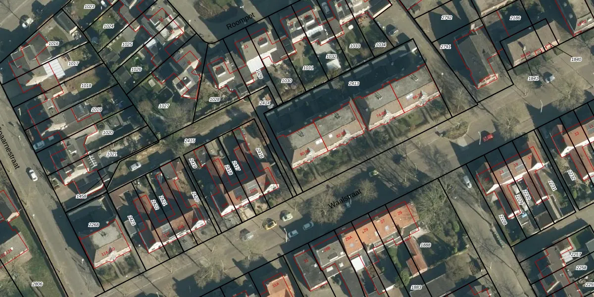Waalstraat 96 is gelegen op kadastraal perceel WSL01T2413. Deze kadastrale aanduiding is uniek en wordt gebruikt door het Kadaster om eigendomsrechten en andere zakelijke rechten vast te leggen. Het perceel maakt onderdeel uit van de kadastrale gemeente Woensel.
