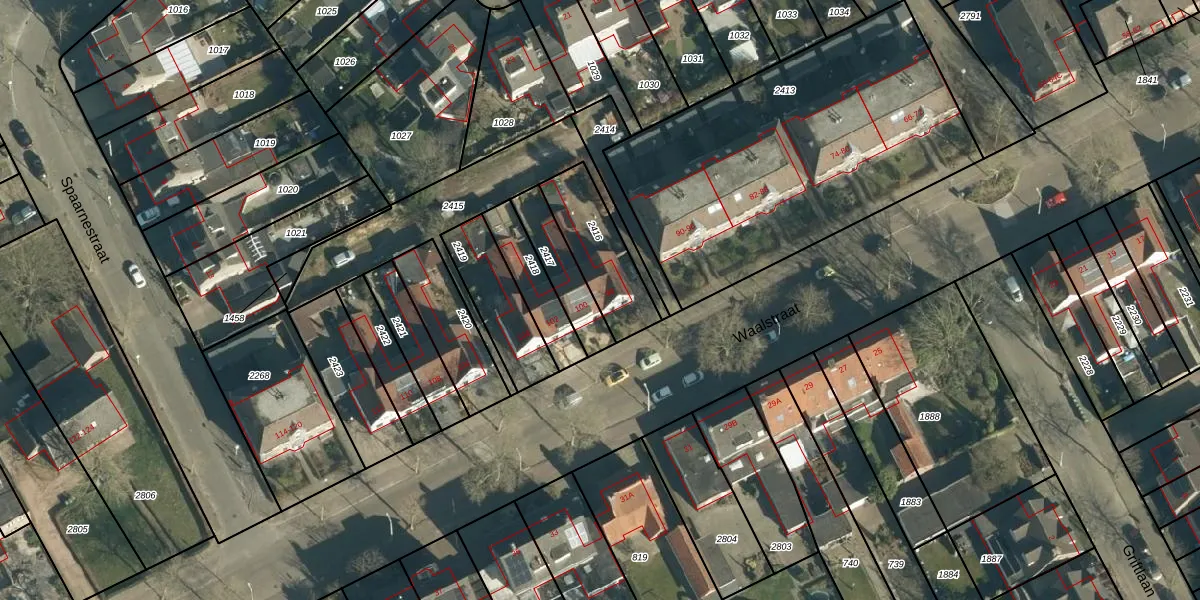 Waalstraat 98 is gelegen op kadastraal perceel WSL01T2416. Deze kadastrale aanduiding is uniek en wordt gebruikt door het Kadaster om eigendomsrechten en andere zakelijke rechten vast te leggen. Het perceel maakt onderdeel uit van de kadastrale gemeente Woensel.