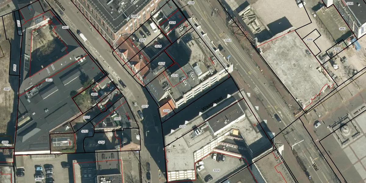 Het perceel waarop Wal 16-F staat heeft een oppervlakte van 1090 m². Dit is een zeer groot perceel. De perceeloppervlakte wordt geregistreerd door het Kadaster. Gedetailleerde informatie over de maten van dit perceel kunt u vinden in het rapport Kadastrale kaart met maatvoering van Wal 16-F.