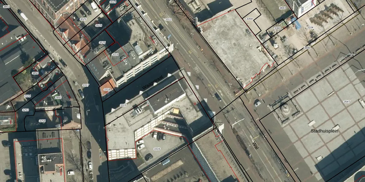 Het perceel waarop Wal 28 staat heeft een oppervlakte van 1968 m². Dit is een zeer groot perceel. De perceeloppervlakte wordt geregistreerd door het Kadaster. Gedetailleerde informatie over de maten van dit perceel kunt u vinden in het rapport Kadastrale kaart met maatvoering van Wal 28.