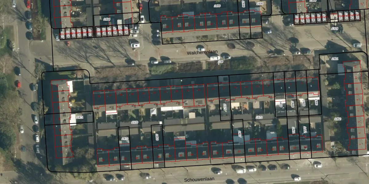 Het perceel waarop Walcherenlaan 23 staat heeft een oppervlakte van 4465 m². Dit is een zeer groot perceel. De perceeloppervlakte wordt geregistreerd door het Kadaster. Gedetailleerde informatie over de maten van dit perceel kunt u vinden in het rapport Kadastrale kaart met maatvoering van Walcherenlaan 23.