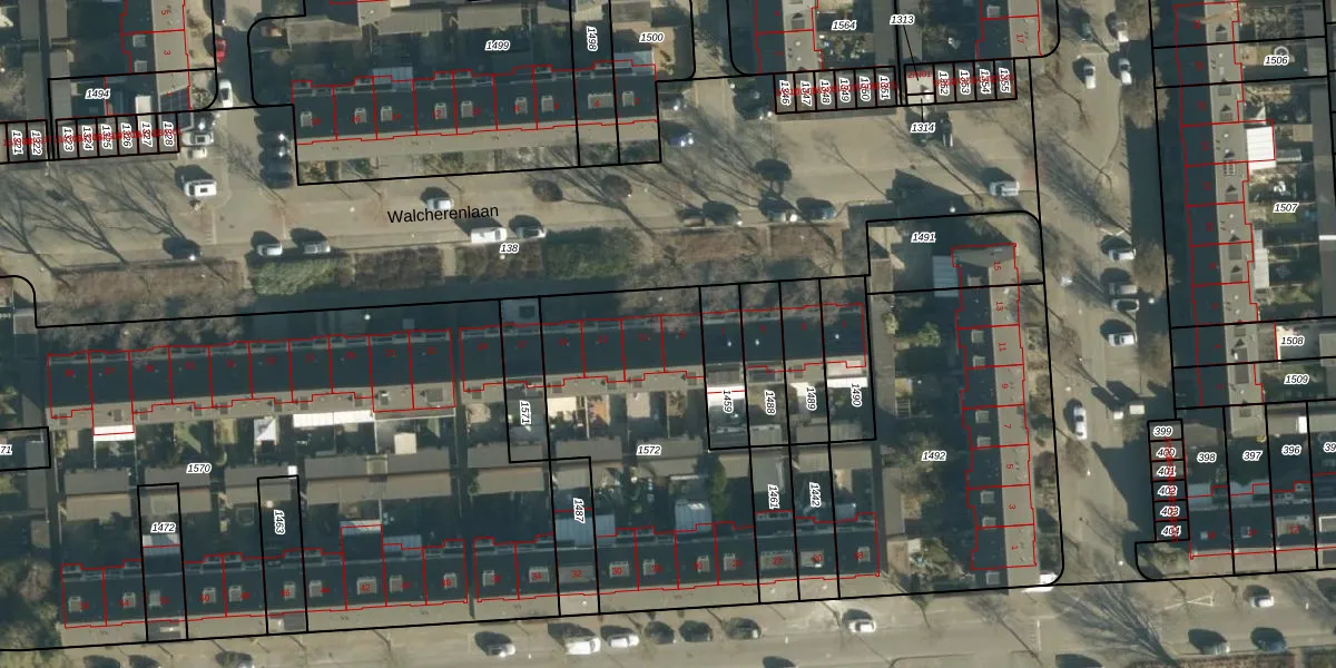 Walcherenlaan 9 is gelegen op kadastraal perceel WSL01R1572. Deze kadastrale aanduiding is uniek en wordt gebruikt door het Kadaster om eigendomsrechten en andere zakelijke rechten vast te leggen. Het perceel maakt onderdeel uit van de kadastrale gemeente Woensel.