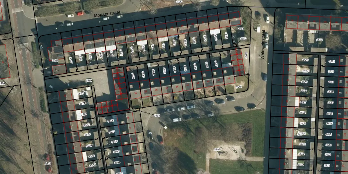 Waleweinstraat 39 is gelegen op kadastraal perceel WSL01P3543. Deze kadastrale aanduiding is uniek en wordt gebruikt door het Kadaster om eigendomsrechten en andere zakelijke rechten vast te leggen. Het perceel maakt onderdeel uit van de kadastrale gemeente Woensel.