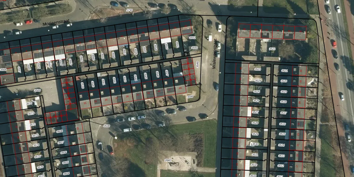 Gebruik de zoekbalk of klik op een perceel voor informatie over de adressen binnen dit perceel.