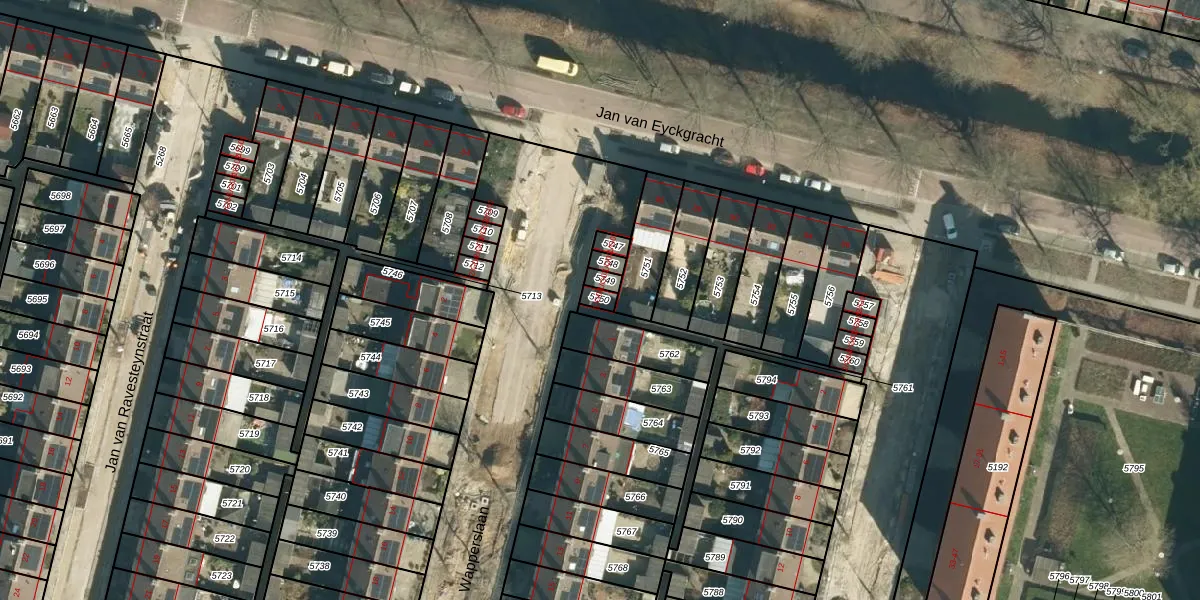 Gebruik de zoekbalk of klik op een perceel voor informatie over de adressen binnen dit perceel.