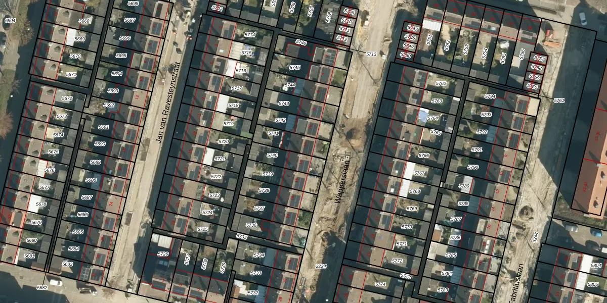 Gebruik de zoekbalk of klik op een perceel voor informatie over de adressen binnen dit perceel.