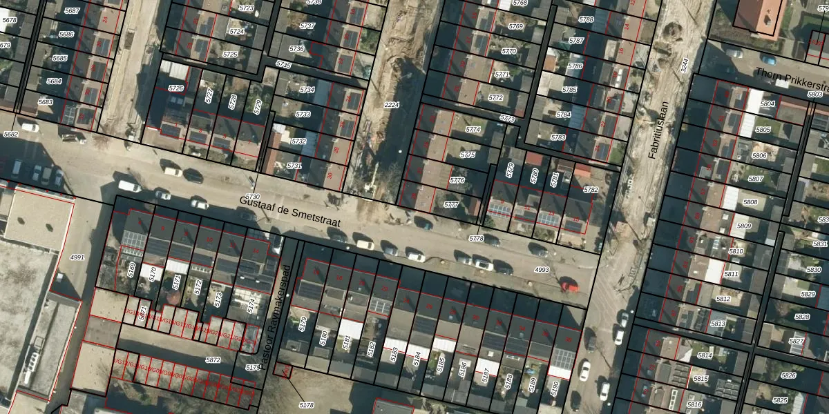 Gebruik de zoekbalk of klik op een perceel voor informatie over de adressen binnen dit perceel.