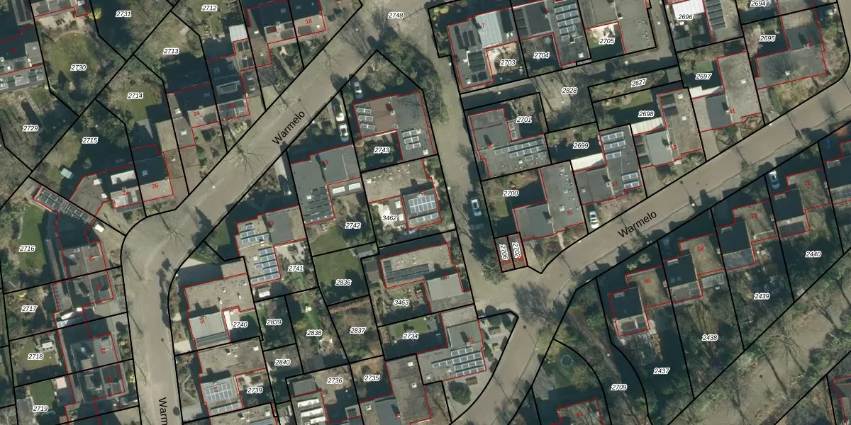 Het perceel waarop Warmelo 31 staat heeft een oppervlakte van 346 m². Dit is een groot perceel. De perceeloppervlakte wordt geregistreerd door het Kadaster. Gedetailleerde informatie over de maten van dit perceel kunt u vinden in het rapport Kadastrale kaart met maatvoering van Warmelo 31.