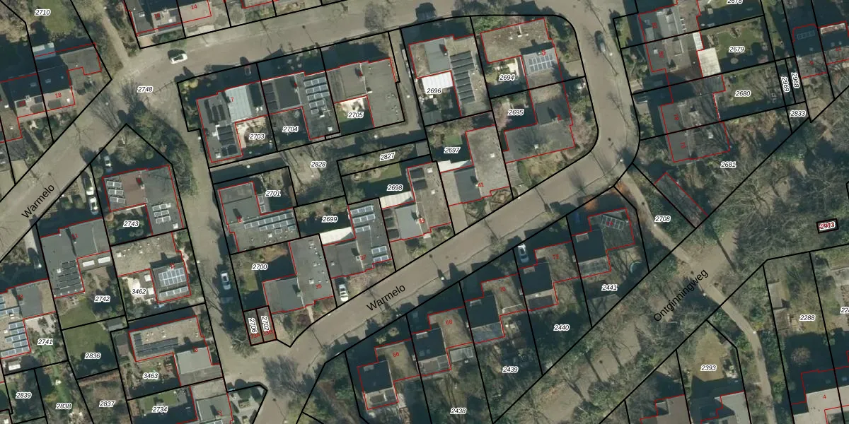 Het perceel waarop Warmelo 39 staat heeft een oppervlakte van 397 m². Dit is een groot perceel. De perceeloppervlakte wordt geregistreerd door het Kadaster. Gedetailleerde informatie over de maten van dit perceel kunt u vinden in het rapport Kadastrale kaart met maatvoering van Warmelo 39.