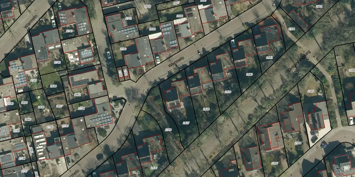 Het perceel waarop Warmelo 66 staat heeft een oppervlakte van 555 m². Dit is een groot perceel. De perceeloppervlakte wordt geregistreerd door het Kadaster. Gedetailleerde informatie over de maten van dit perceel kunt u vinden in het rapport Kadastrale kaart met maatvoering van Warmelo 66.