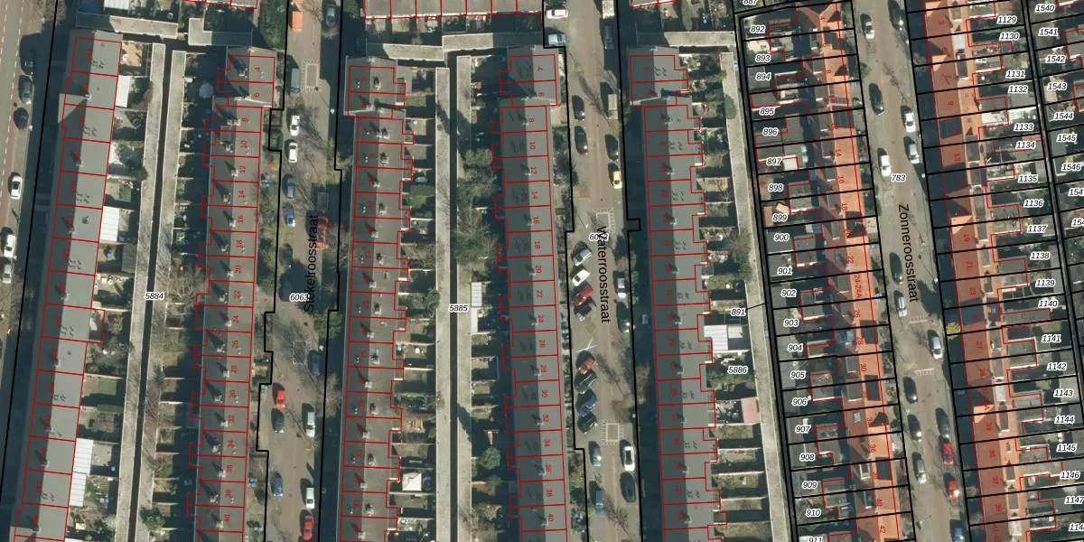 Het perceel waarop Waterroosstraat 20 staat heeft een oppervlakte van 6752 m². Dit is een zeer groot perceel. De perceeloppervlakte wordt geregistreerd door het Kadaster. Gedetailleerde informatie over de maten van dit perceel kunt u vinden in het rapport Kadastrale kaart met maatvoering van Waterroosstraat 20.