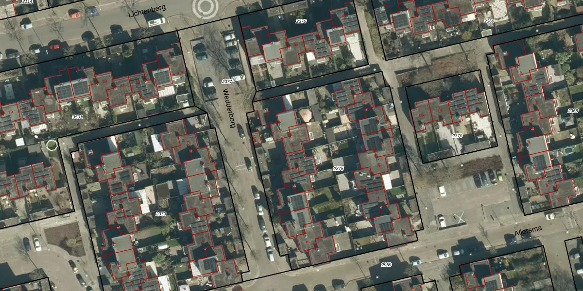 Het perceel waarop Wedderborg 14 staat heeft een oppervlakte van 2930 m². Dit is een zeer groot perceel. De perceeloppervlakte wordt geregistreerd door het Kadaster. Gedetailleerde informatie over de maten van dit perceel kunt u vinden in het rapport Kadastrale kaart met maatvoering van Wedderborg 14.