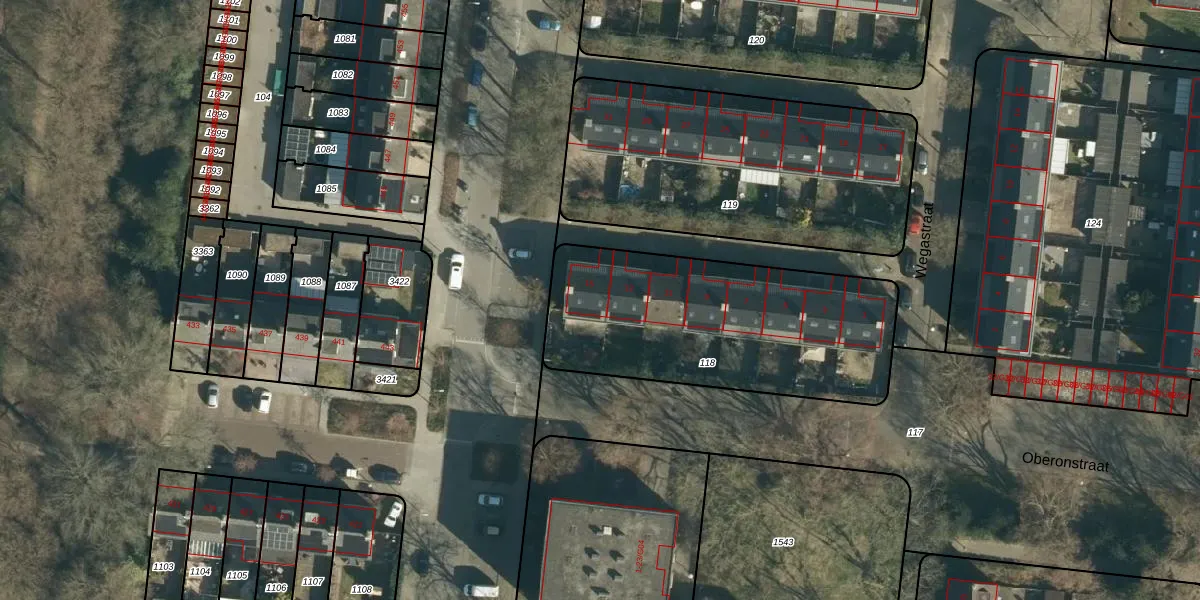 Het perceel waarop Wegastraat 15 staat heeft een oppervlakte van 1210 m². Dit is een zeer groot perceel. De perceeloppervlakte wordt geregistreerd door het Kadaster. Gedetailleerde informatie over de maten van dit perceel kunt u vinden in het rapport Kadastrale kaart met maatvoering van Wegastraat 15.