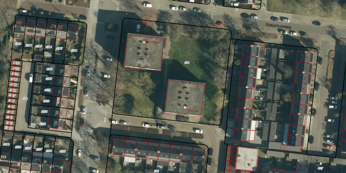 Wegastraat 36 is gelegen op kadastraal perceel WSL01M128. Deze kadastrale aanduiding is uniek en wordt gebruikt door het Kadaster om eigendomsrechten en andere zakelijke rechten vast te leggen. Het perceel maakt onderdeel uit van de kadastrale gemeente Woensel.