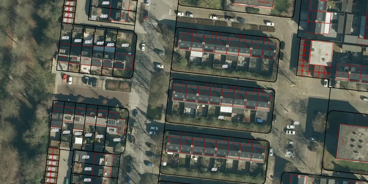 Wegastraat 63 is gelegen op kadastraal perceel WSL01M121. Deze kadastrale aanduiding is uniek en wordt gebruikt door het Kadaster om eigendomsrechten en andere zakelijke rechten vast te leggen. Het perceel maakt onderdeel uit van de kadastrale gemeente Woensel.