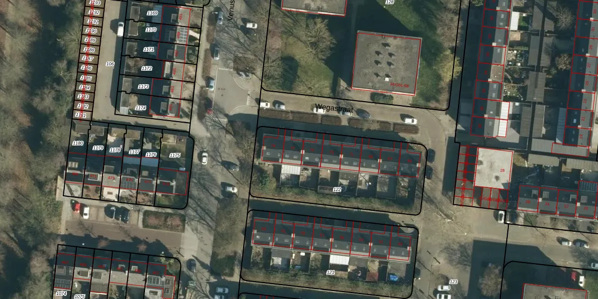 Wegastraat 77 is gelegen op kadastraal perceel WSL01M122. Deze kadastrale aanduiding is uniek en wordt gebruikt door het Kadaster om eigendomsrechten en andere zakelijke rechten vast te leggen. Het perceel maakt onderdeel uit van de kadastrale gemeente Woensel.