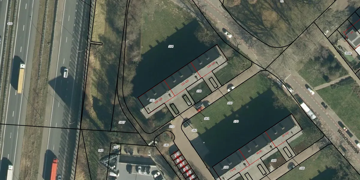 Welschapsedijk 121 is gelegen op kadastraal perceel STR03E163. Deze kadastrale aanduiding is uniek en wordt gebruikt door het Kadaster om eigendomsrechten en andere zakelijke rechten vast te leggen. Het perceel maakt onderdeel uit van de kadastrale gemeente Strijp.