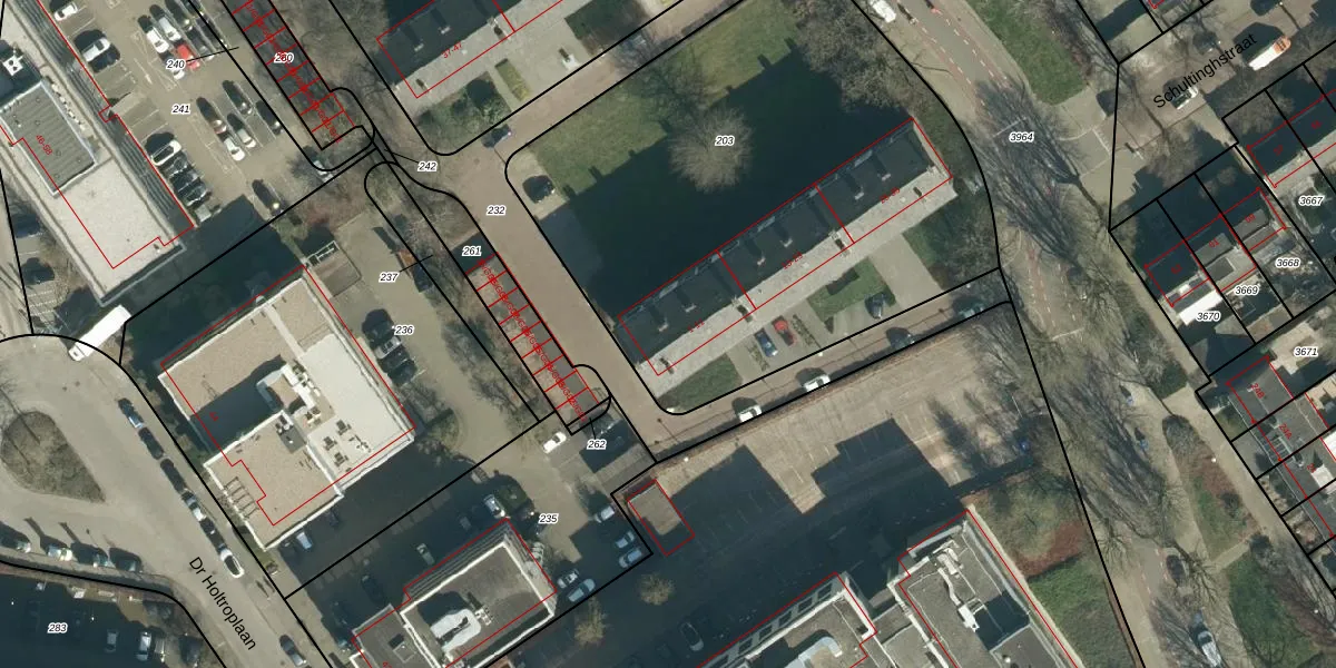 Het perceel waarop het adres ligt is STR03-E-203. De afkorting 'STR03' staat voor kadastrale gemeente Strijp. De oppervlakte van het perceel is 2980 m². Dat is groter dan gemiddeld in Strijp, waar de gemiddelde perceeloppervlakte op 1881,11 m² ligt. Het grootste perceel in de kadastrale gemeente is 1,87 km². Het kleinste perceel heeft een oppervlakte van 0 m². Op het perceel liggen in totaal 18 adressen. De huidige grenzen van het perceel zijn digitaal in de Basisregistratie Kadaster (BRK) geregistreerd op 19-05-2006.