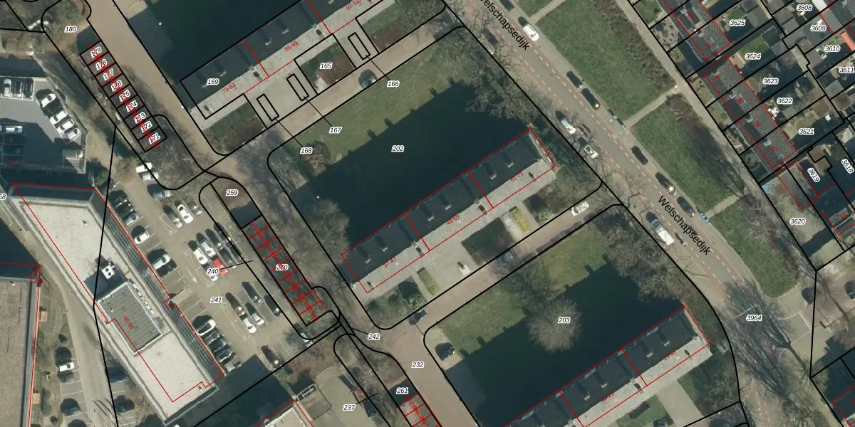 Welschapsedijk 57 is gelegen op kadastraal perceel STR03E202. Deze kadastrale aanduiding is uniek en wordt gebruikt door het Kadaster om eigendomsrechten en andere zakelijke rechten vast te leggen. Het perceel maakt onderdeel uit van de kadastrale gemeente Strijp.