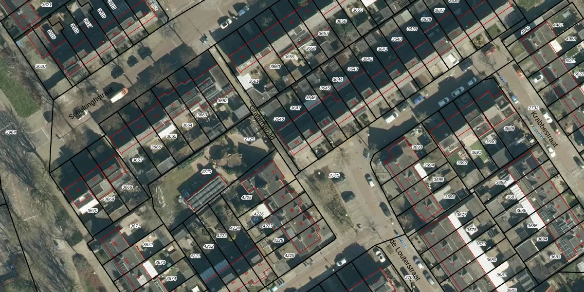 Gebruik de zoekbalk of klik op een perceel voor informatie over de adressen binnen dit perceel.