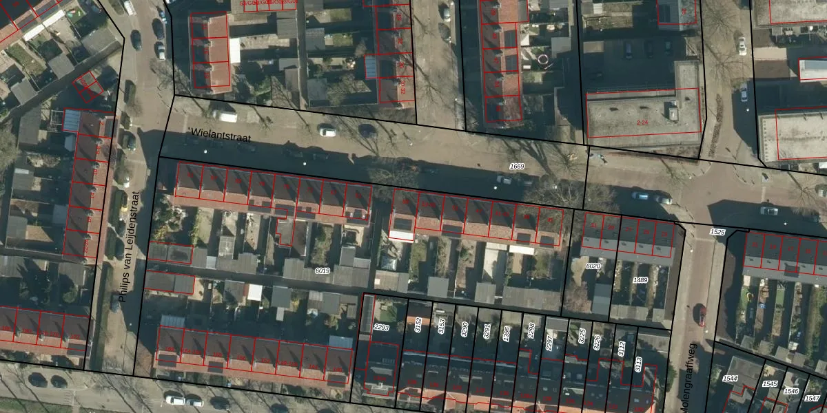Wielantstraat 59 is gelegen op kadastraal perceel STR03C6019. Deze kadastrale aanduiding is uniek en wordt gebruikt door het Kadaster om eigendomsrechten en andere zakelijke rechten vast te leggen. Het perceel maakt onderdeel uit van de kadastrale gemeente Strijp.