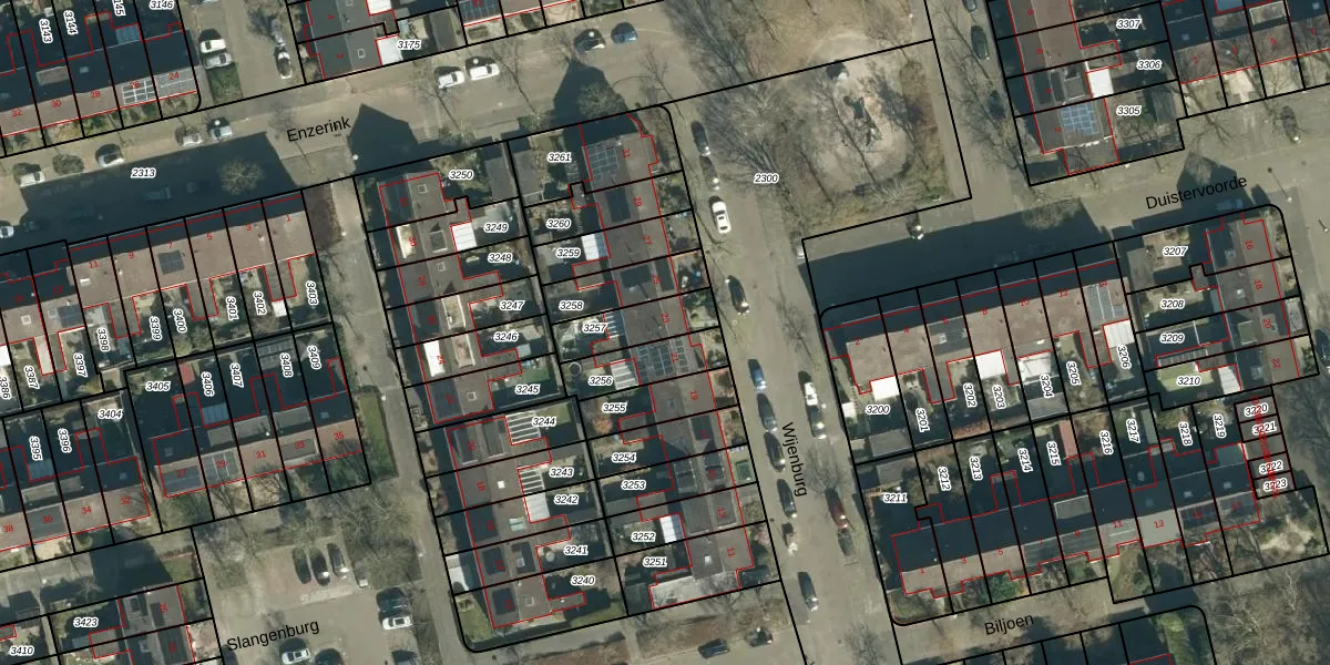 Gebruik de zoekbalk of klik op een perceel voor informatie over de adressen binnen dit perceel.