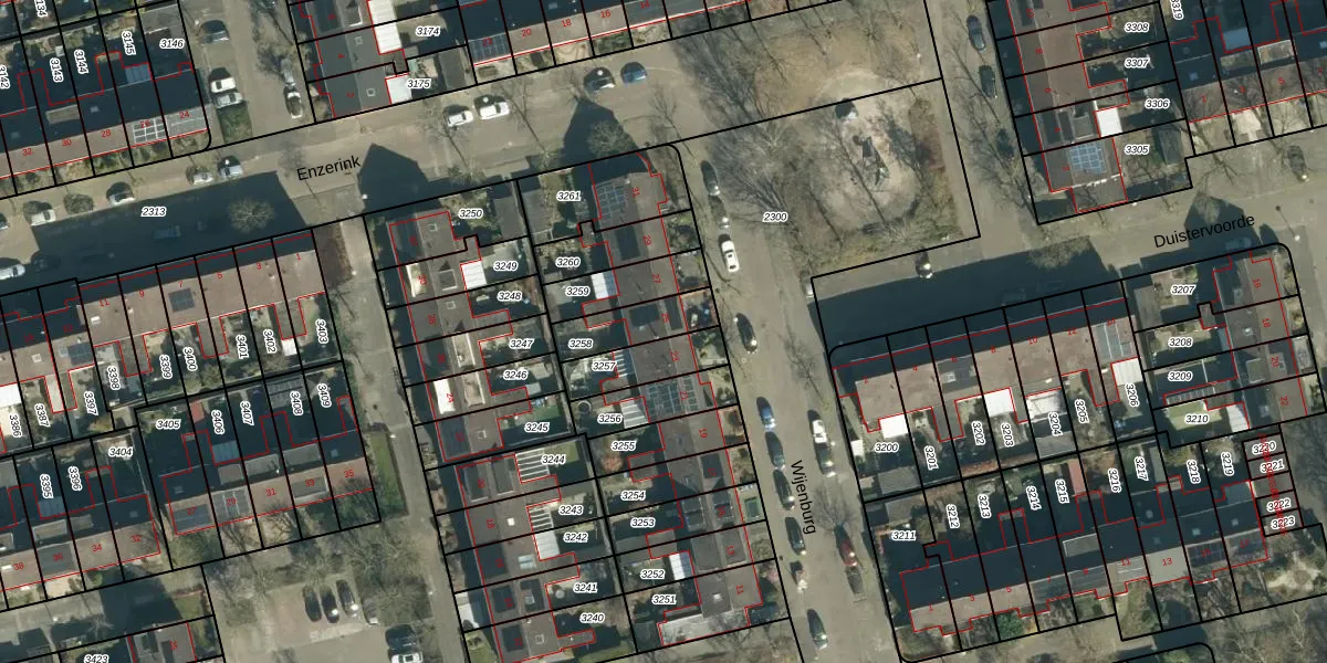 Gebruik de zoekbalk of klik op een perceel voor informatie over de adressen binnen dit perceel.