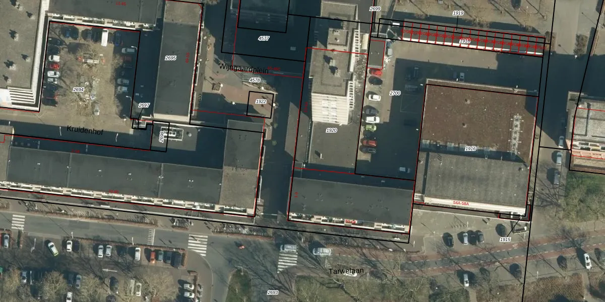 Het perceel waarop Wijngaardplein 11 staat heeft een oppervlakte van 1753 m². Dit is een zeer groot perceel. De perceeloppervlakte wordt geregistreerd door het Kadaster. Gedetailleerde informatie over de maten van dit perceel kunt u vinden in het rapport Kadastrale kaart met maatvoering van Wijngaardplein 11.