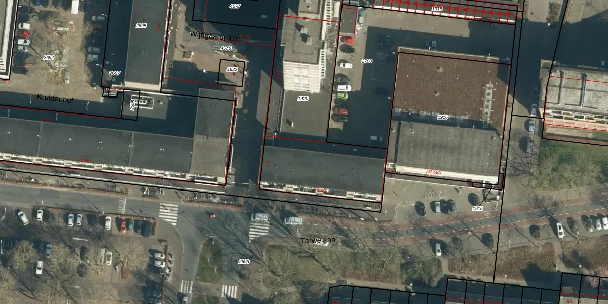 Het perceel waarop Wijngaardplein 6 staat heeft een oppervlakte van 1753 m². Dit is een zeer groot perceel. De perceeloppervlakte wordt geregistreerd door het Kadaster. Gedetailleerde informatie over de maten van dit perceel kunt u vinden in het rapport Kadastrale kaart met maatvoering van Wijngaardplein 6.