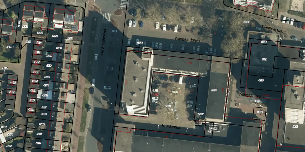 Het perceel waarop Wijnpeerstraat 27 staat heeft een oppervlakte van 3967 m². Dit is een zeer groot perceel. De perceeloppervlakte wordt geregistreerd door het Kadaster. Gedetailleerde informatie over de maten van dit perceel kunt u vinden in het rapport Kadastrale kaart met maatvoering van Wijnpeerstraat 27.