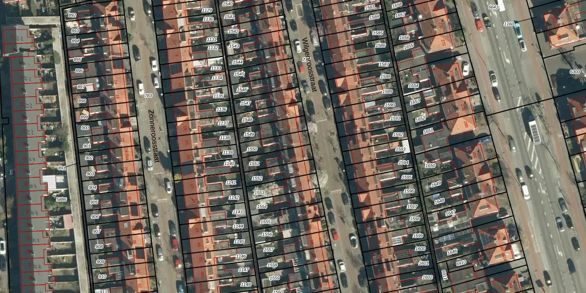 Gebruik de zoekbalk of klik op een perceel voor informatie over de adressen binnen dit perceel.