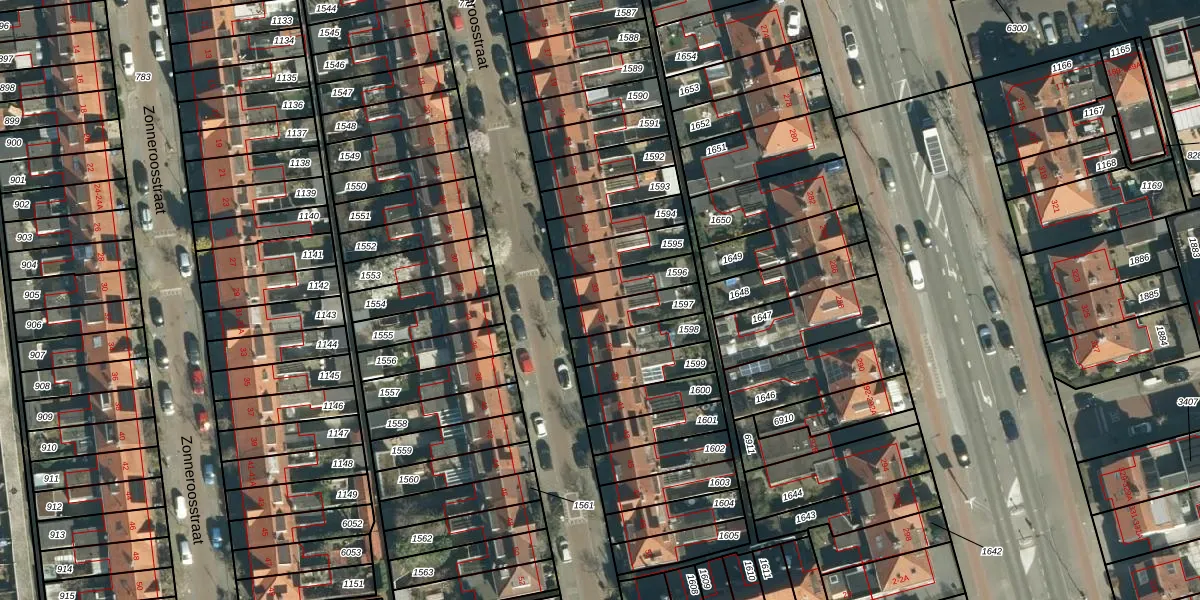 Gebruik de zoekbalk of klik op een perceel voor informatie over de adressen binnen dit perceel.