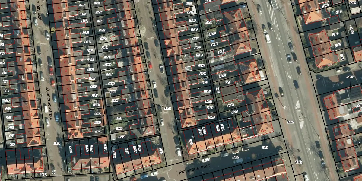 Gebruik de zoekbalk of klik op een perceel voor informatie over de adressen binnen dit perceel.