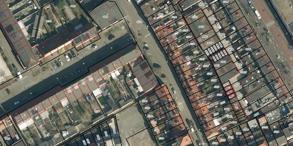 Het perceel waarop Willem Barentzstraat 18 staat heeft een oppervlakte van 3634 m². Dit is een zeer groot perceel. De perceeloppervlakte wordt geregistreerd door het Kadaster. Gedetailleerde informatie over de maten van dit perceel kunt u vinden in het rapport Kadastrale kaart met maatvoering van Willem Barentzstraat 18.