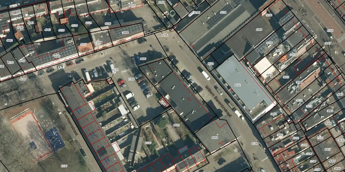 Willem Barentzstraat 2-D is gelegen op kadastraal perceel WSL01G8691. Deze kadastrale aanduiding is uniek en wordt gebruikt door het Kadaster om eigendomsrechten en andere zakelijke rechten vast te leggen. Het perceel maakt onderdeel uit van de kadastrale gemeente Woensel.