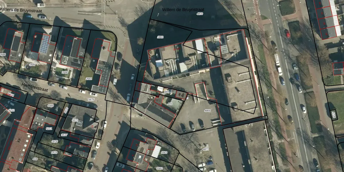 Het perceel waarop Willem de Bruynstraat 46 staat heeft een oppervlakte van 1953 m². Dit is een zeer groot perceel. De perceeloppervlakte wordt geregistreerd door het Kadaster. Gedetailleerde informatie over de maten van dit perceel kunt u vinden in het rapport Kadastrale kaart met maatvoering van Willem de Bruynstraat 46.
