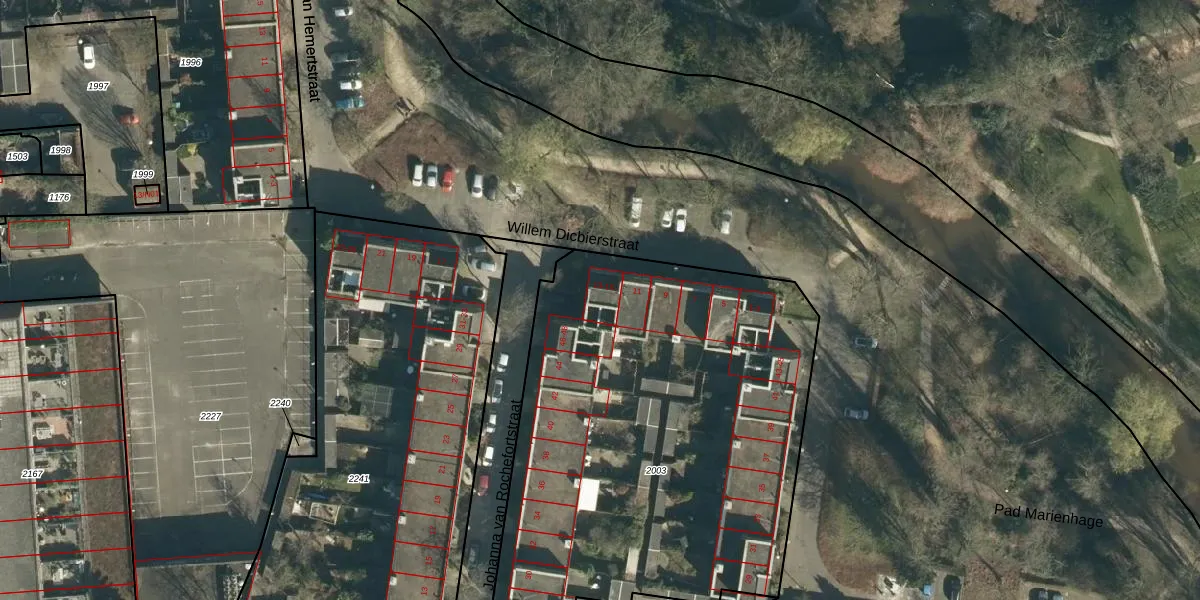 Het perceel waarop Willem Dicbierstraat 15 staat heeft een oppervlakte van 2660 m². Dit is een zeer groot perceel. De perceeloppervlakte wordt geregistreerd door het Kadaster. Gedetailleerde informatie over de maten van dit perceel kunt u vinden in het rapport Kadastrale kaart met maatvoering van Willem Dicbierstraat 15.