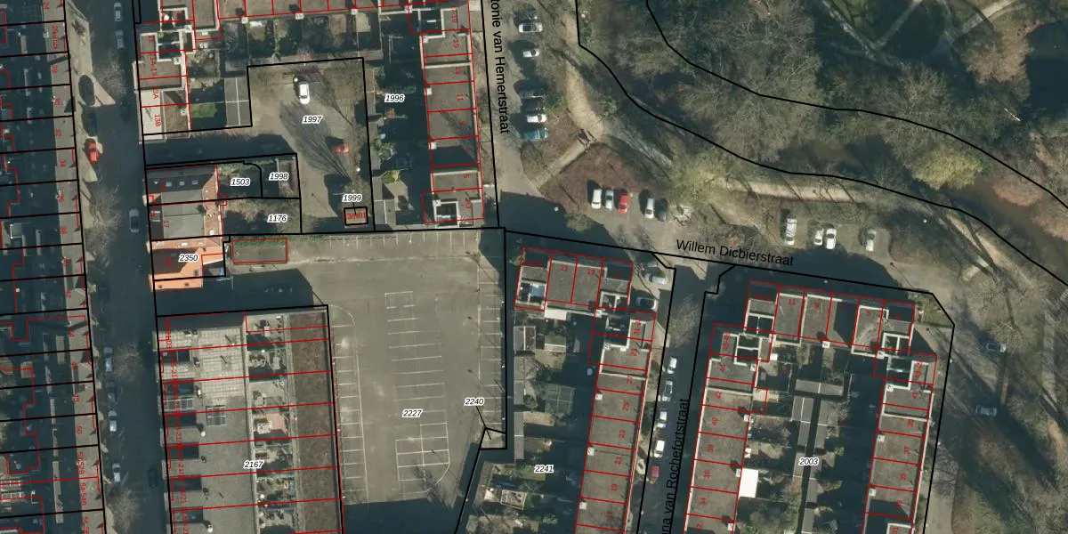 Het perceel waarop Willem Dicbierstraat 23 staat heeft een oppervlakte van 2825 m². Dit is een zeer groot perceel. De perceeloppervlakte wordt geregistreerd door het Kadaster. Gedetailleerde informatie over de maten van dit perceel kunt u vinden in het rapport Kadastrale kaart met maatvoering van Willem Dicbierstraat 23.