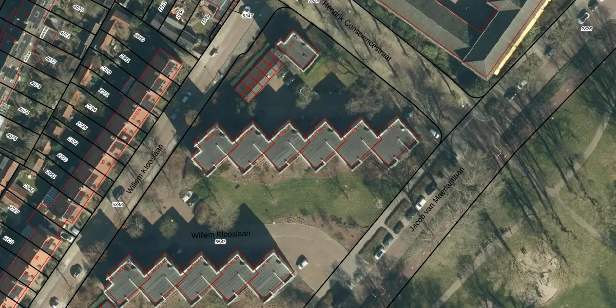 Het perceel waarop Willem Klooslaan 23 staat heeft een oppervlakte van 1,0 ha. Dit is een zeer groot perceel. De perceeloppervlakte wordt geregistreerd door het Kadaster. Gedetailleerde informatie over de maten van dit perceel kunt u vinden in het rapport Kadastrale kaart met maatvoering van Willem Klooslaan 23.